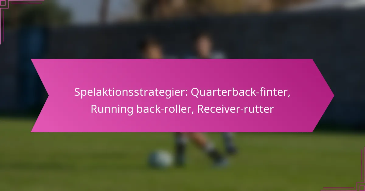 Play action-strategier i fotboll involverar en bedräglig taktik där quarterbacken fejkar en överlämning till running backen, med målet att vilseleda försvaret och skapa möjligheter för passningsspel. Denna teknik förbättrar offensiv effektivitet genom att utnyttja defensiva reaktioner.